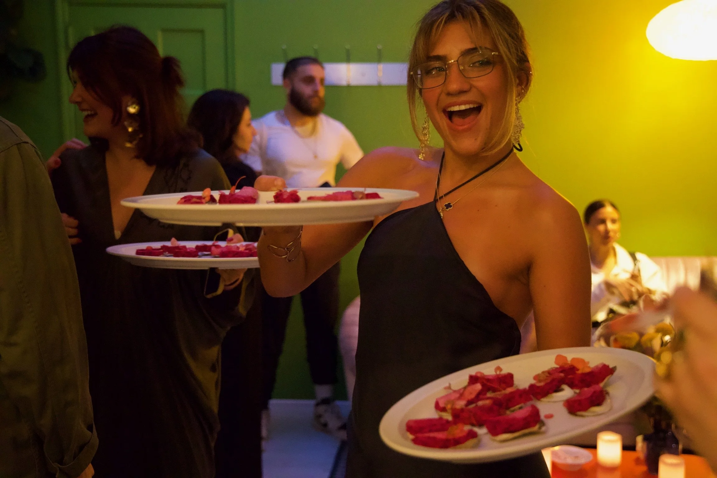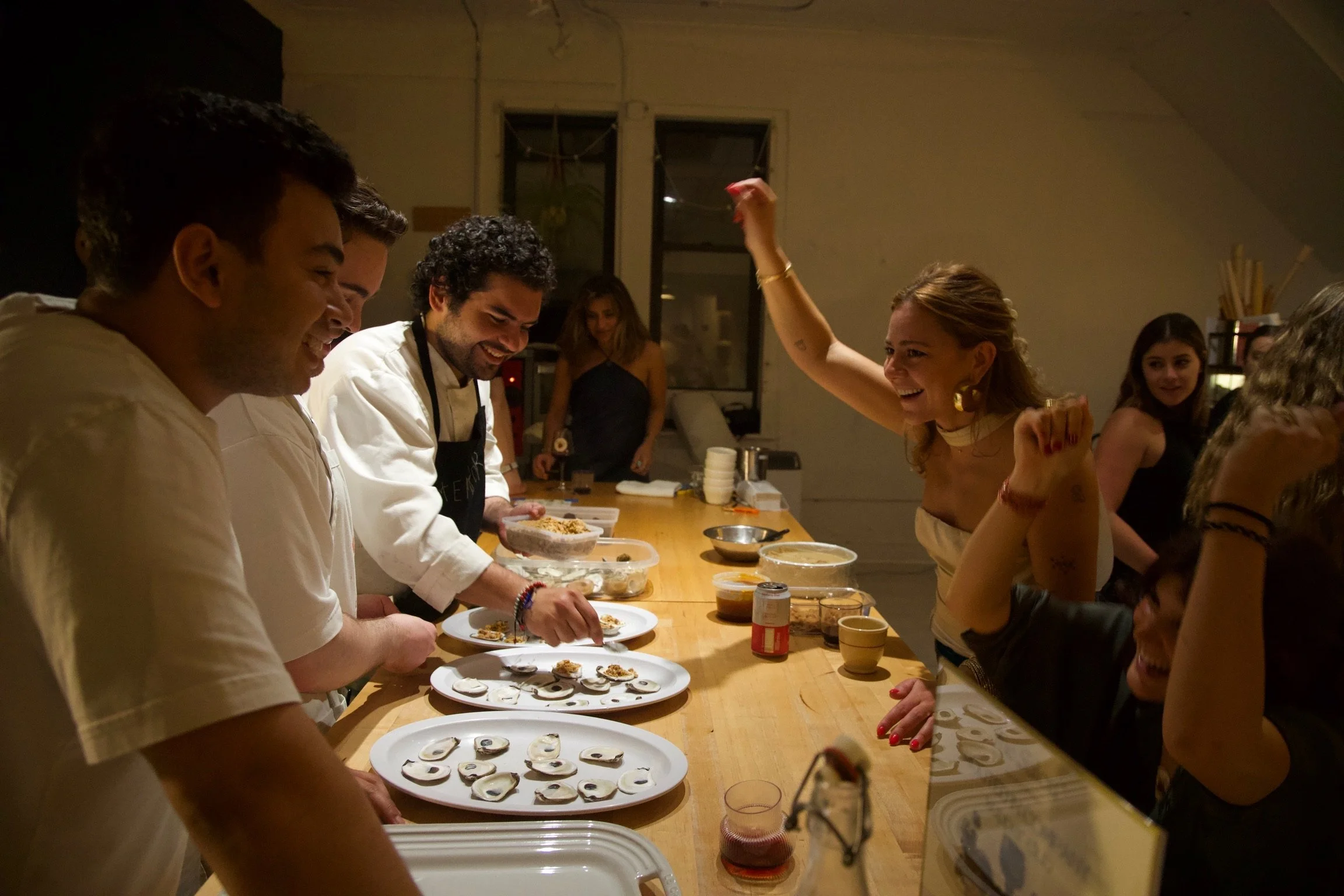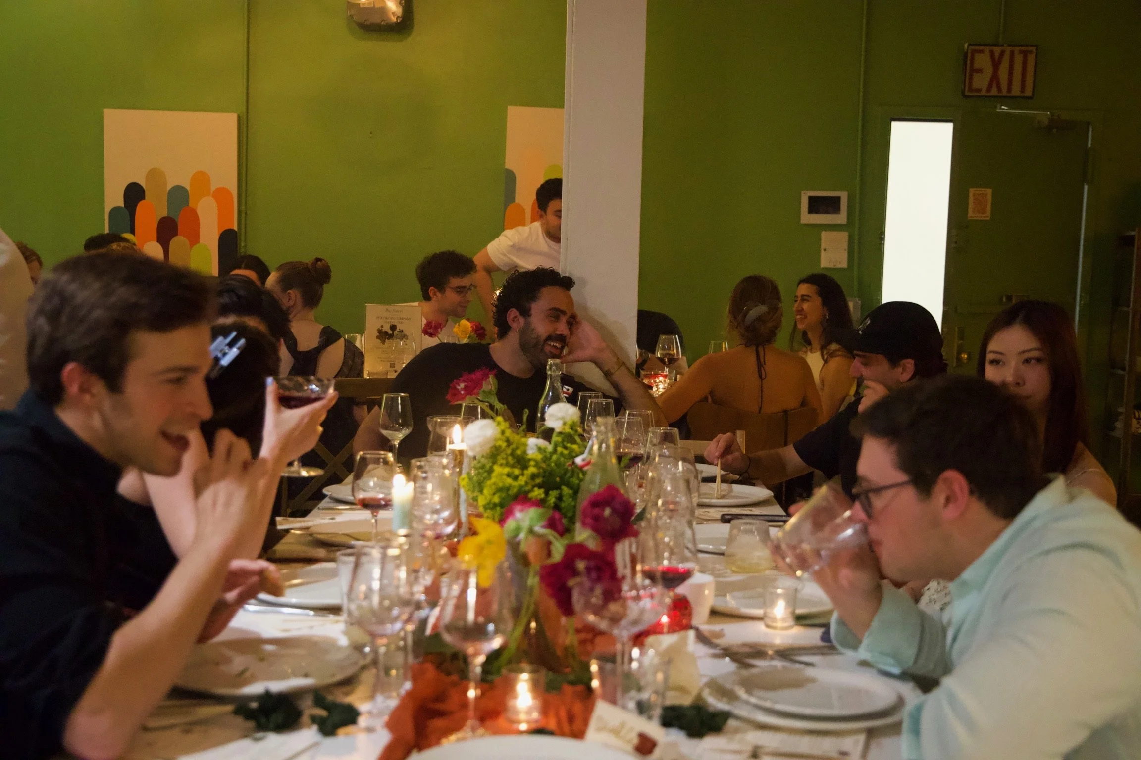 When we moved to NYC, we noticed how rare those moments felt. Conversations were quick, surface-level, easy to leave. So we started making them ourselves — at first in our tiny apartments, then in borrowed studios, then at long communal tables filled with people who were craving the same thing we were: conversation that made you feel awake.